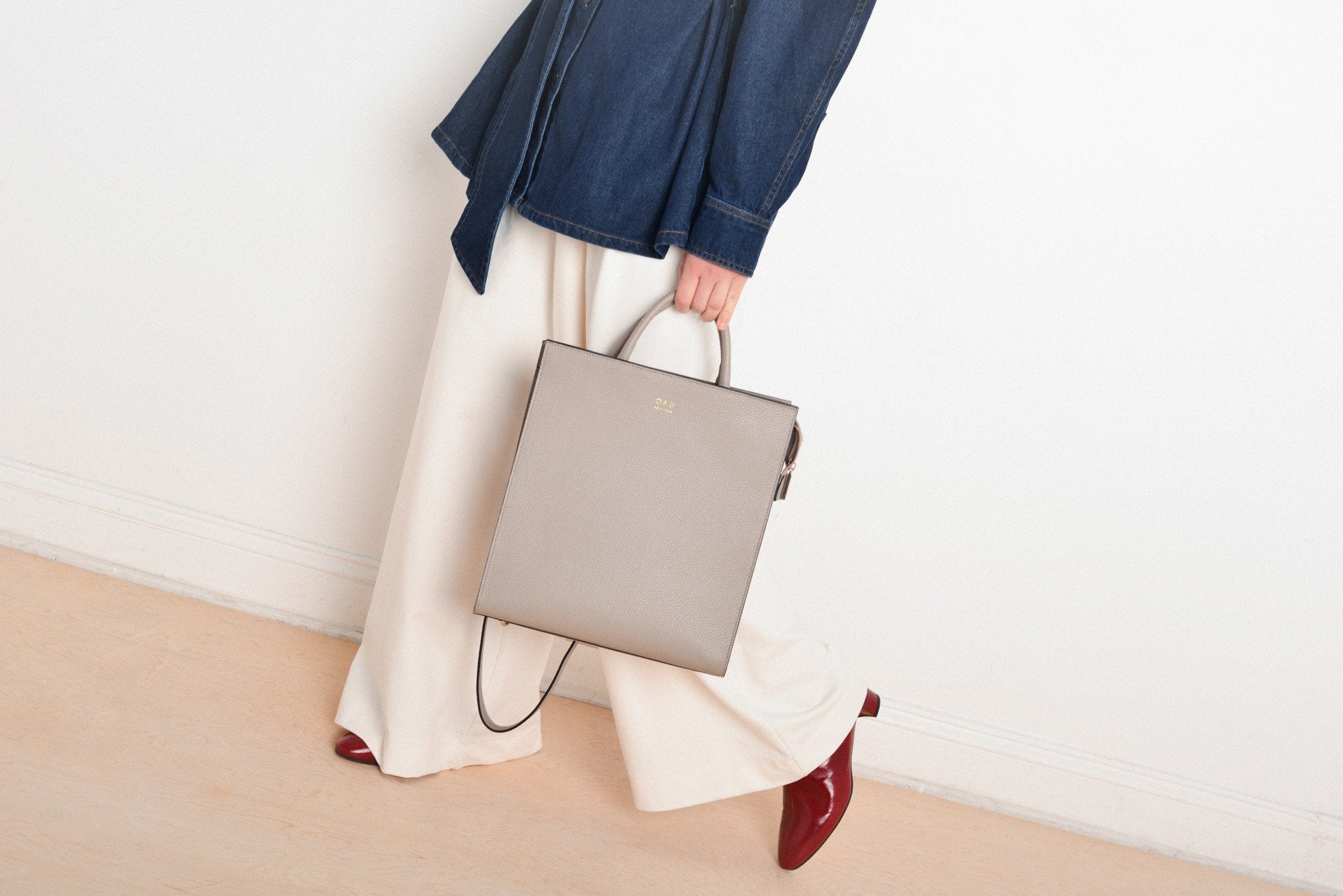 • Adjustable, detachable straps with gold hardware