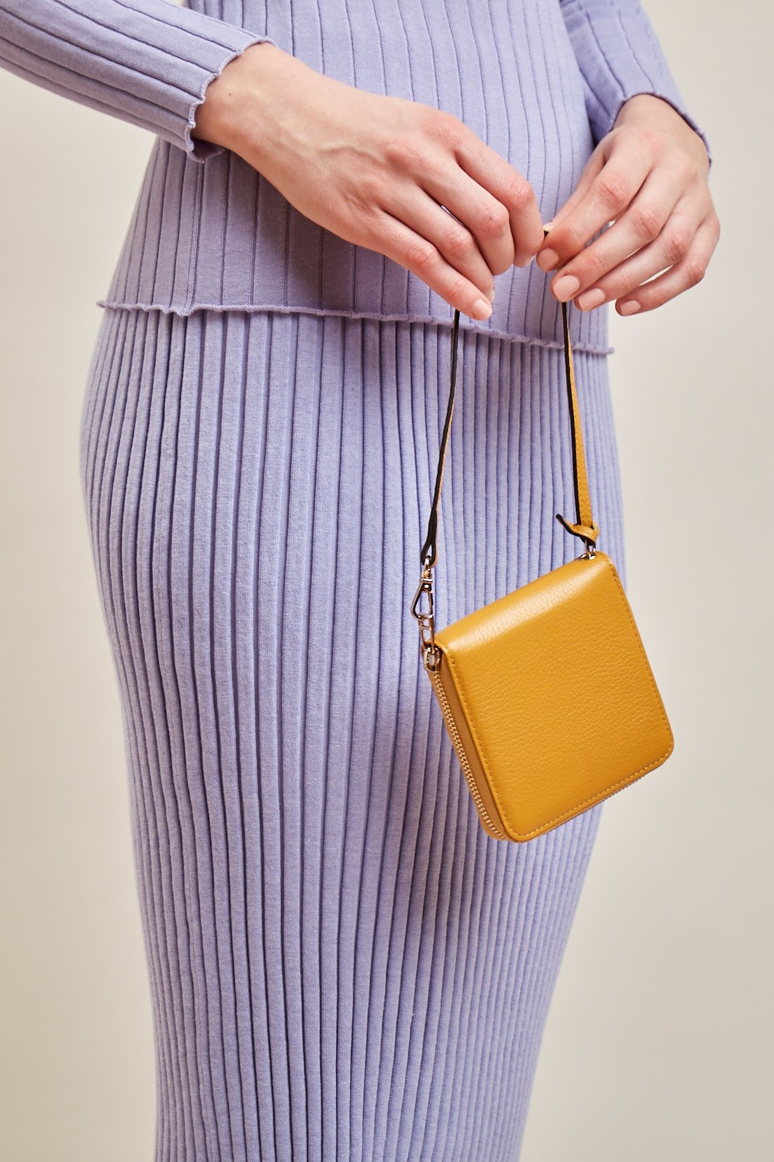 A compact zip around wallet with a strap that converts to make it a wristlet. Or remove the strap altogether and tuck away in your bag.